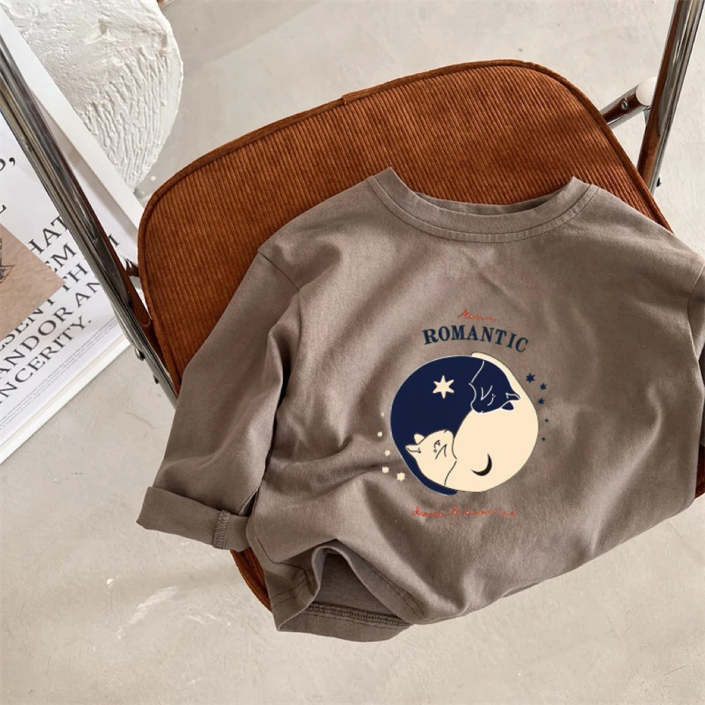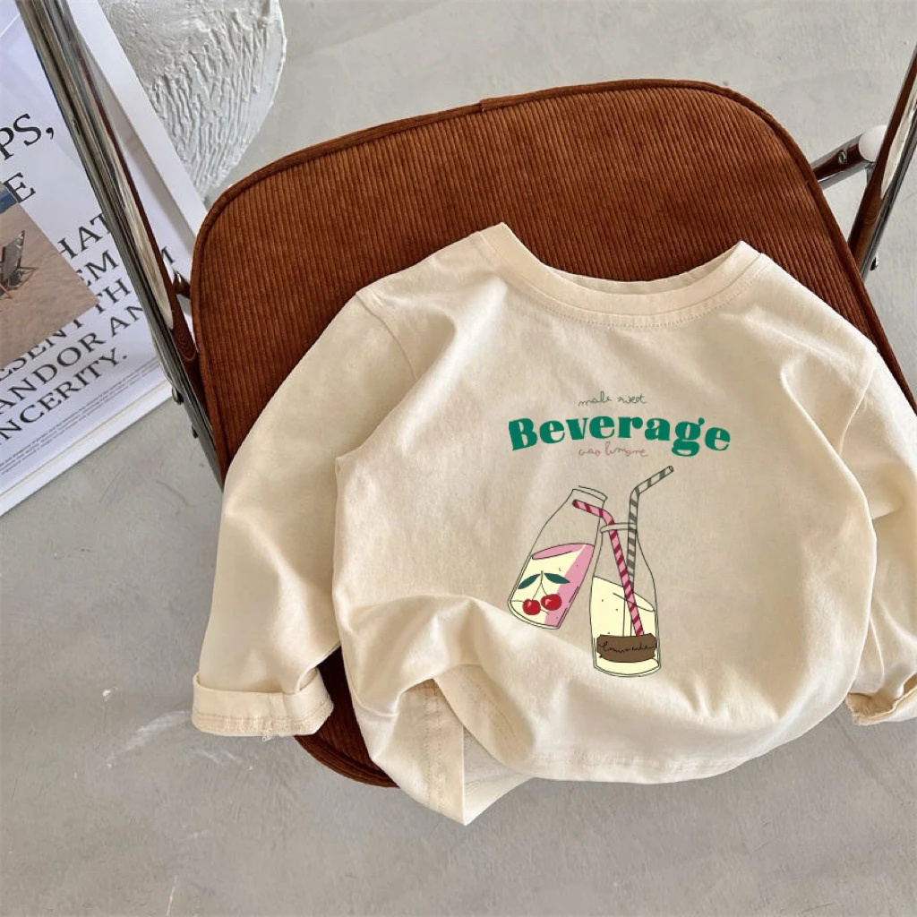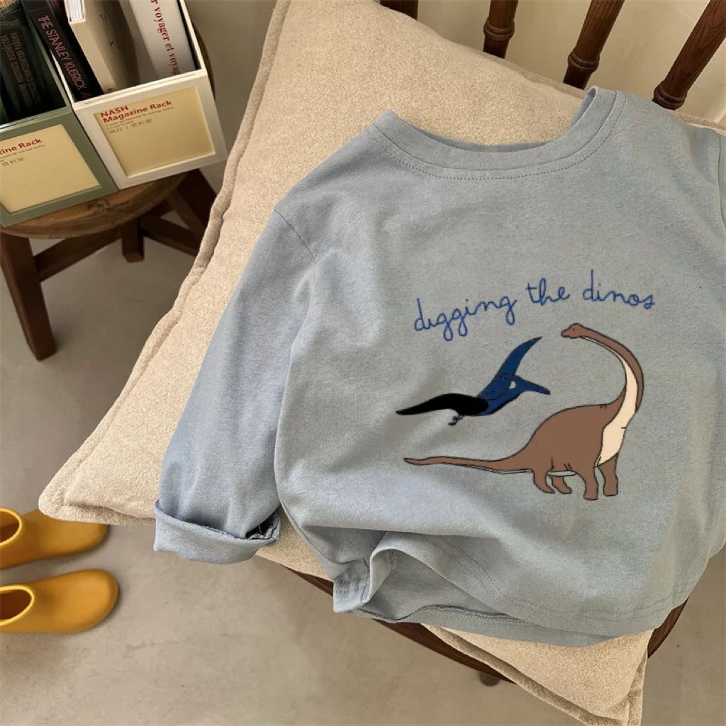 Long Sleeve Cute T-shirts Blue Tops 2026 Spring Autumn Clothes Kids Fashion Simple Versatile Base Shirt Loose Thin Sports Tops