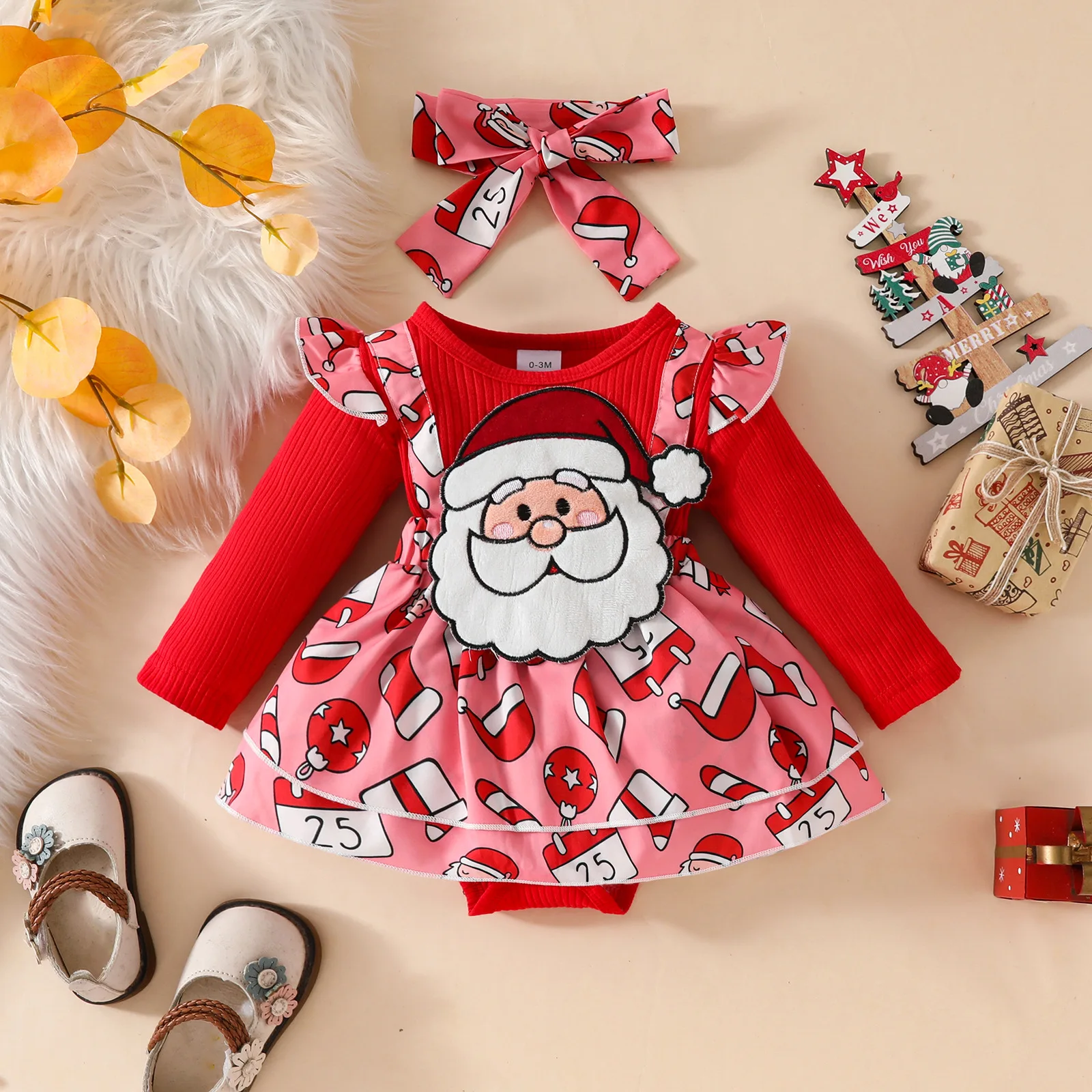 2025 Christmas Baby Romper Dress with Headband for Newborns Santa Gingerbread Man Xmas Festive Outfit for 0-18M Infant Clothing