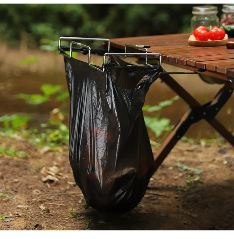 Portable Stainless Steel Camping Trash Holder - Foldable Table Stand for Picnic, BBQ & Outdoor, Eco-Friendly Garbage Bag Rack