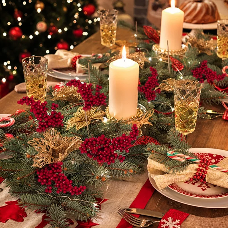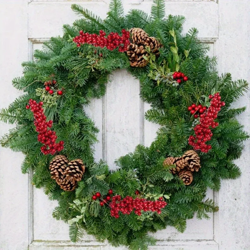 1/60PCS Christmas Red Berries Branch Artificial Holly Berry Stamen Flowers Wreath for Tree Ornaments New Year Party Home Decor