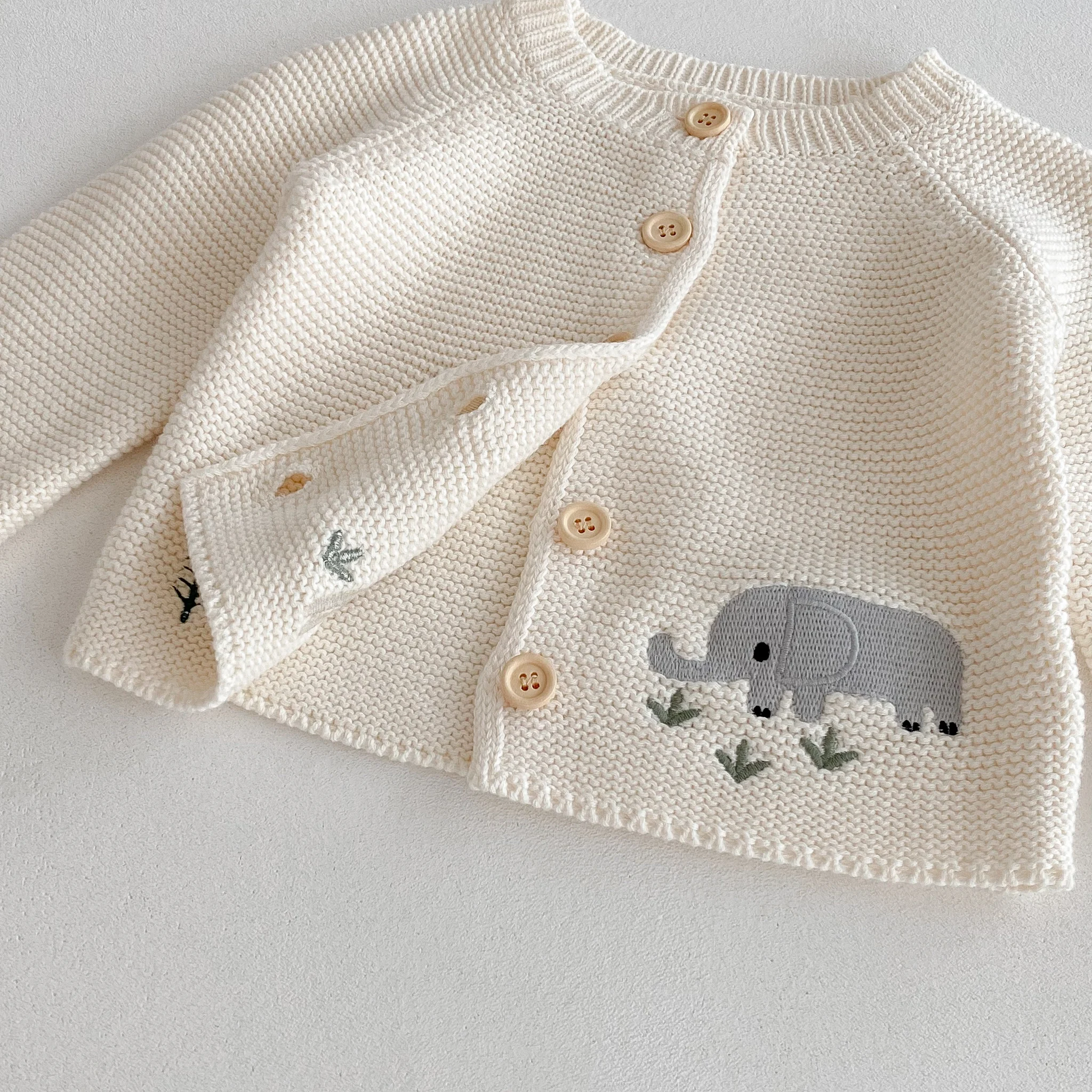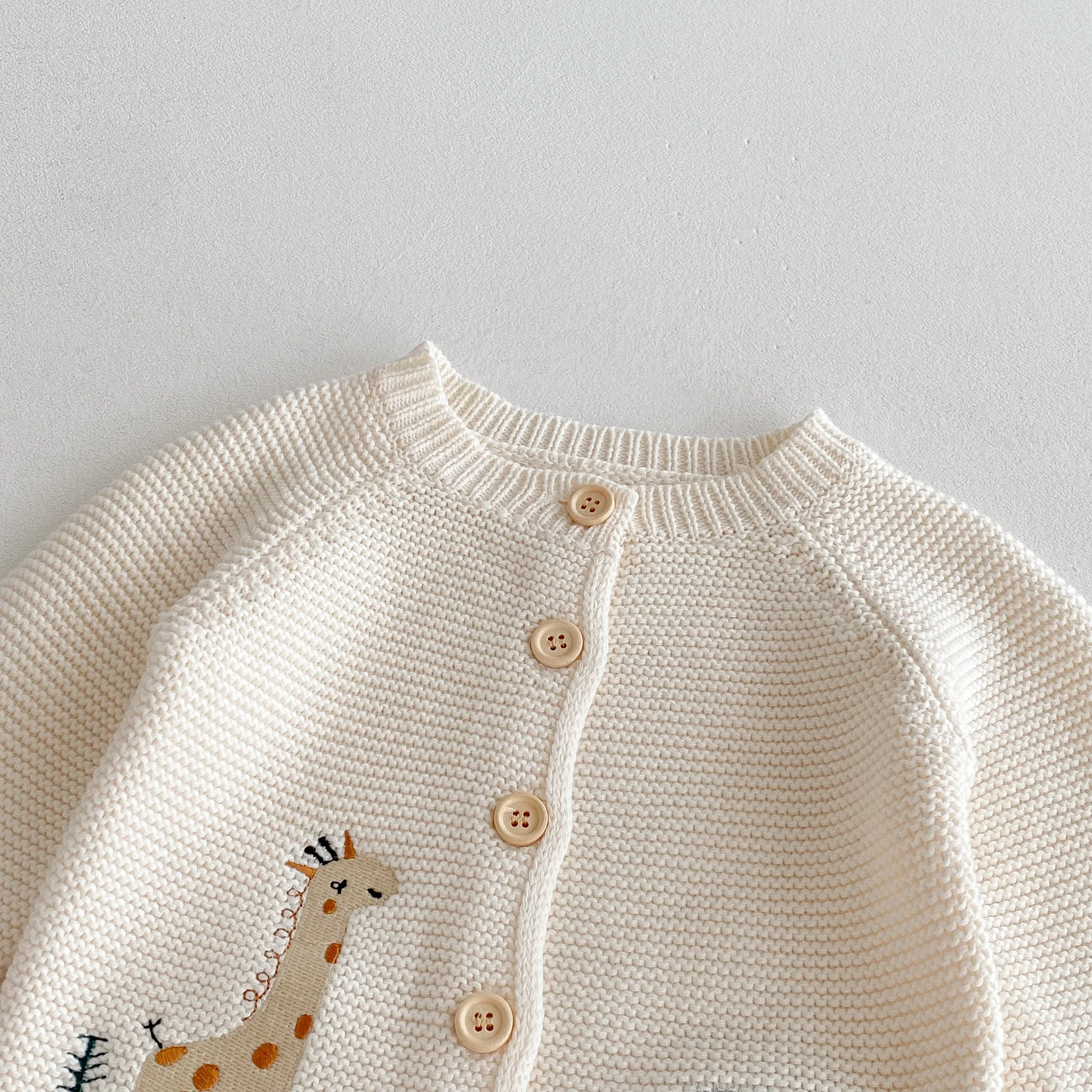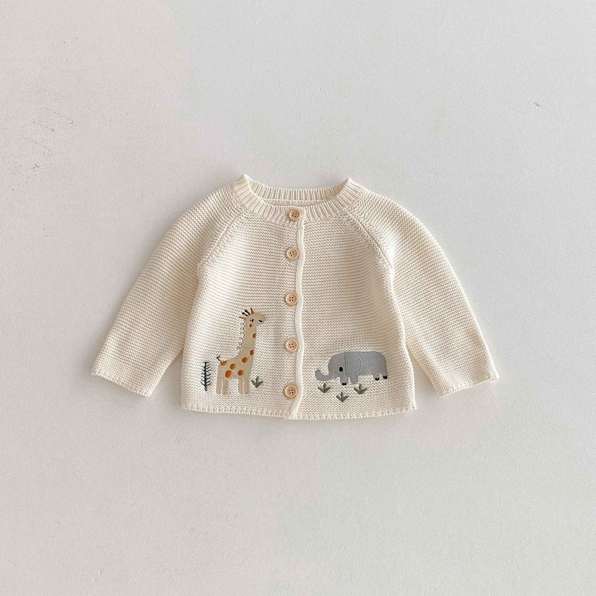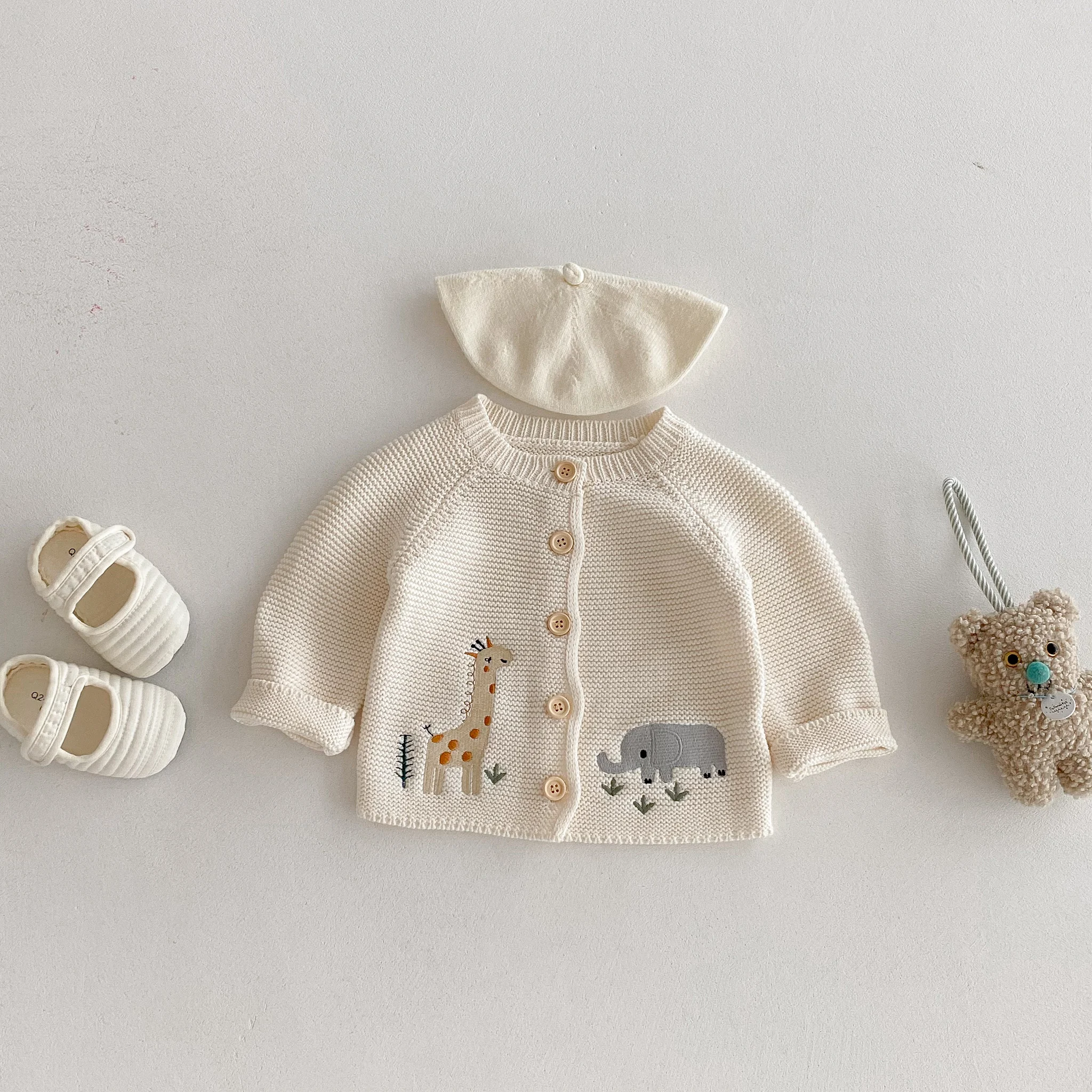 Long-sleeved knitted cardigan for baby girls in autumn and winter, animal cartoon casual sweater cardigan coat