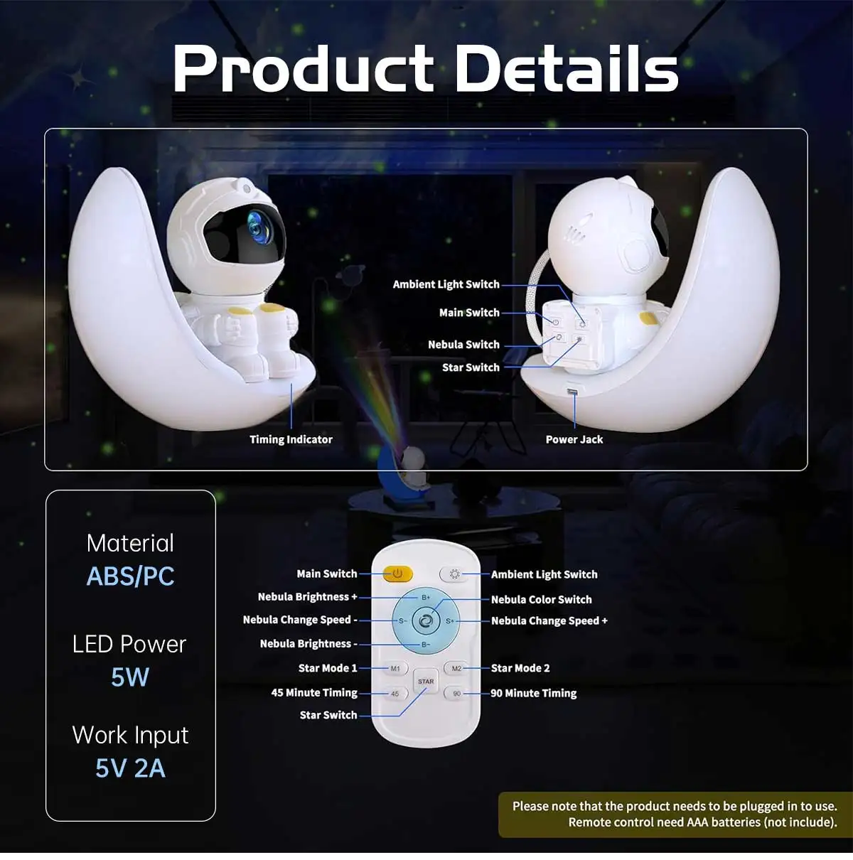 Astronaut Galaxy Projector Moon Night Light Star Ceiling Projector Galaxy Light with Timer and Remote Starry Nebula LED Lamp