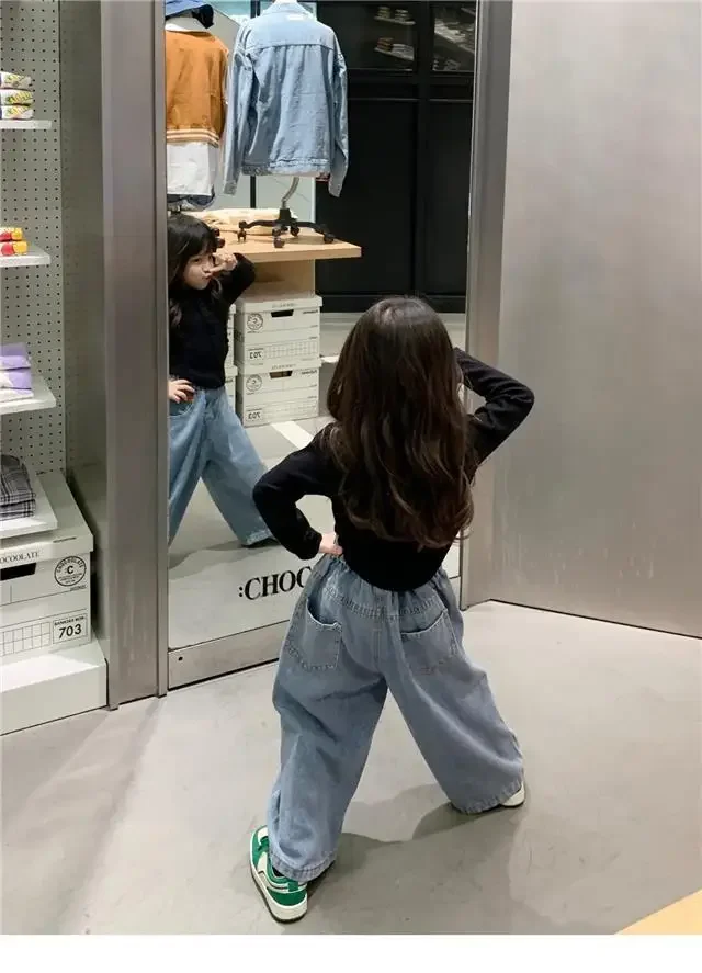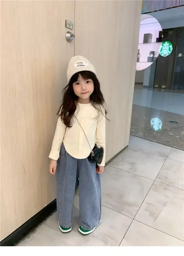 Autunm Clothes 1PCS Children's Denim Pants Girls' Baby Clothes Korean Bottoming Shirts Casual Jeans Girls Wide-leg Pants Tops