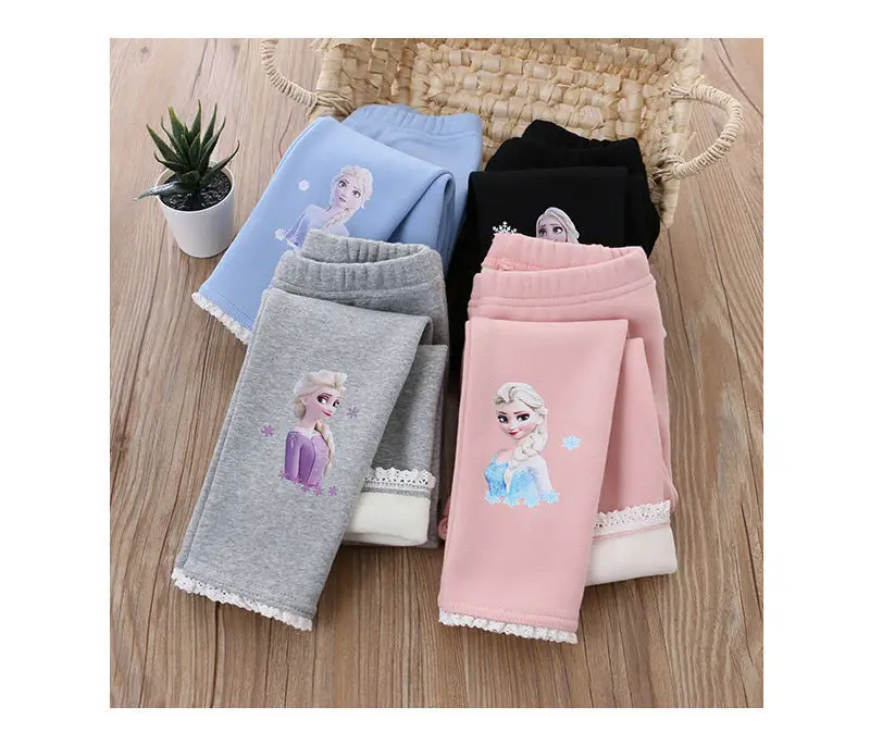 Disney Frozen Elsa Princess Girls Cotton Pants Baby Girls Winter Velvet Warm Long Pants Children's Cartoon Outerwear Leggings