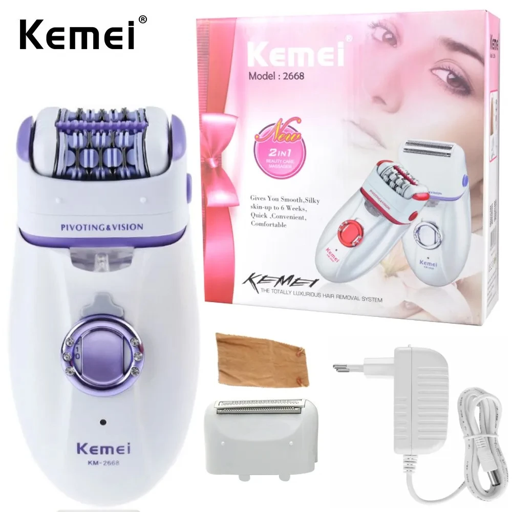 Kemei KM-2668 Lady Body Facial Epilator Rechargeable Shaver Shaving Women Hair Remover Electric Body Depilation Machine