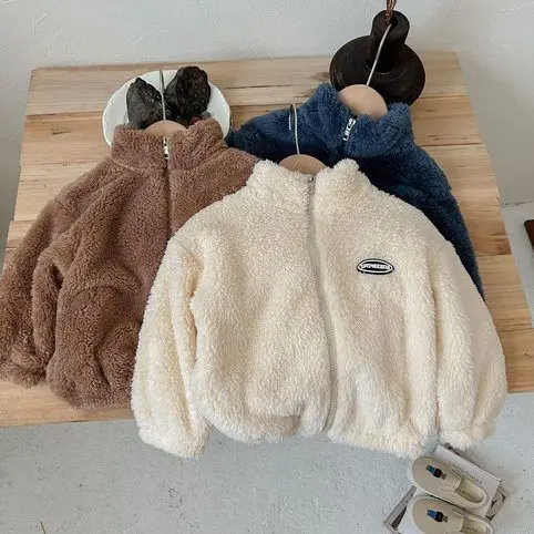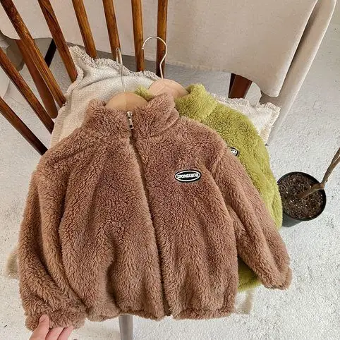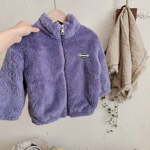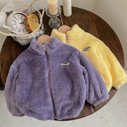 Jackets & Coats Kids Flannel Jacket Autumn Winter Boys Girl Casual Simple Coat Colorful Lined Top Solid Color Children Clothing