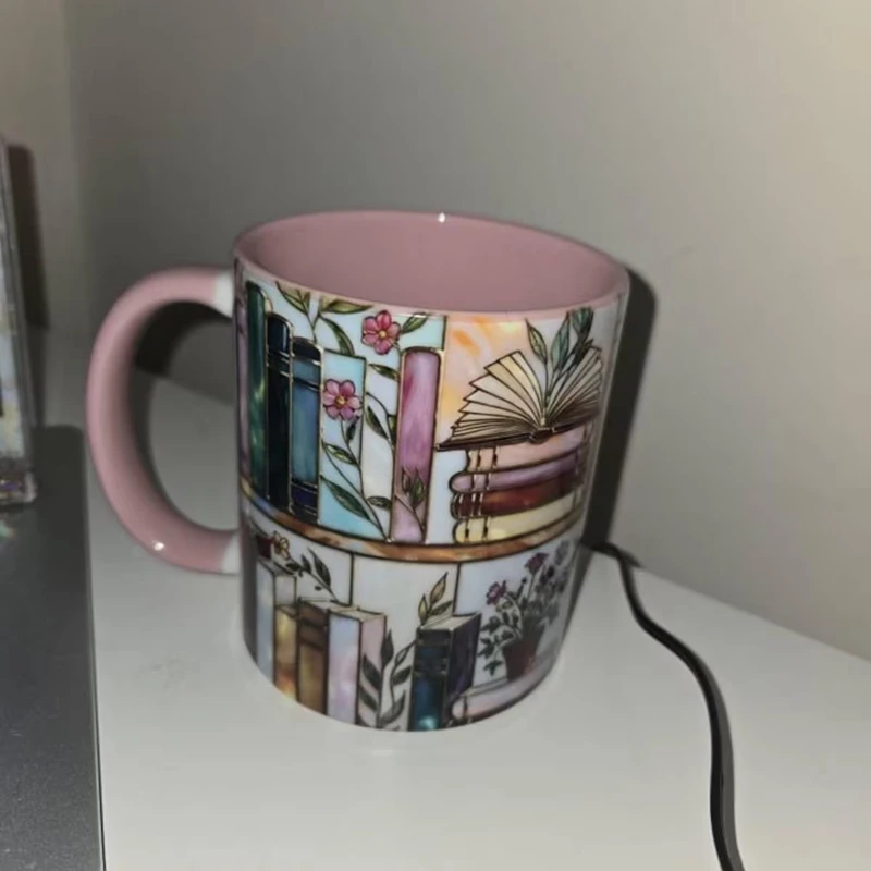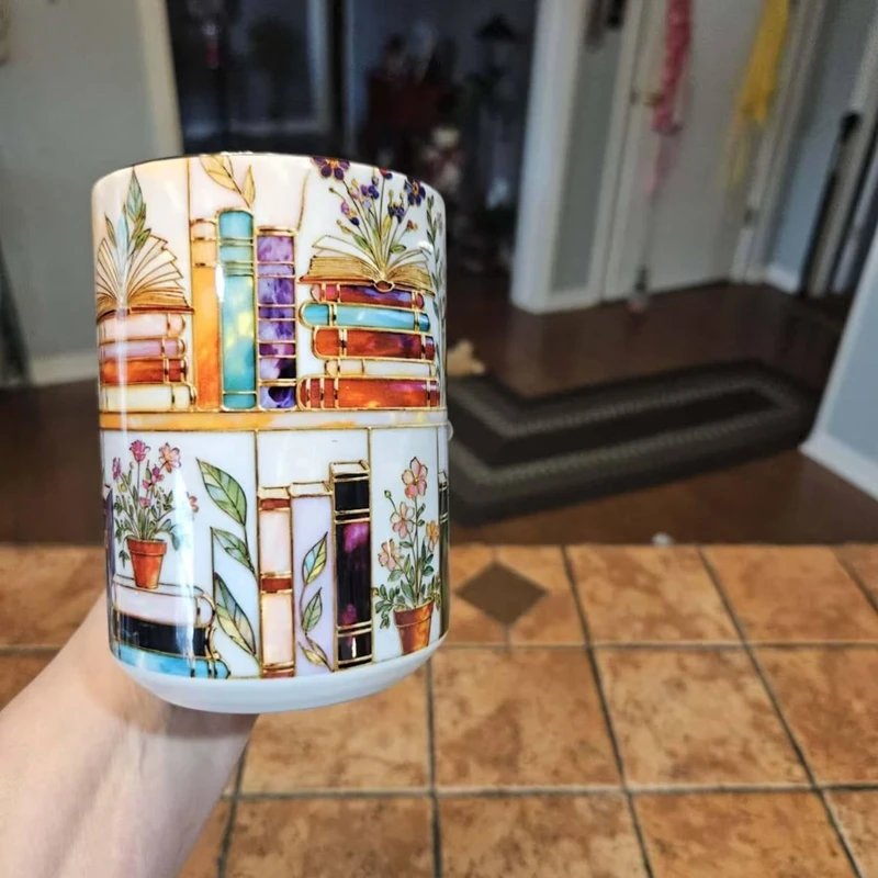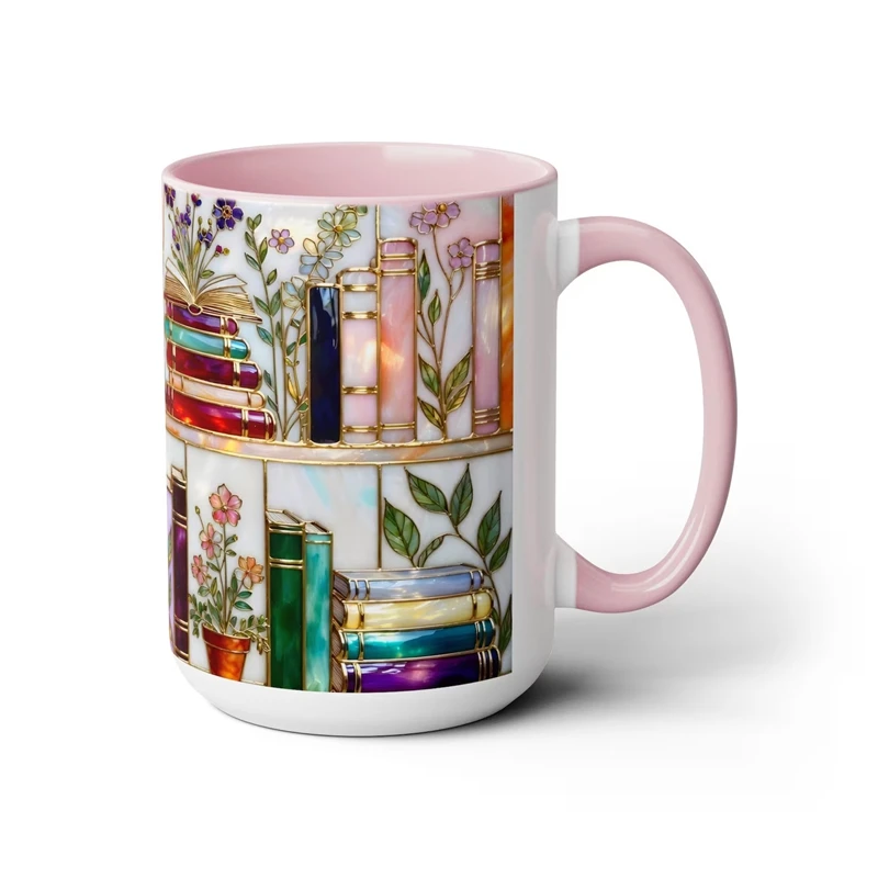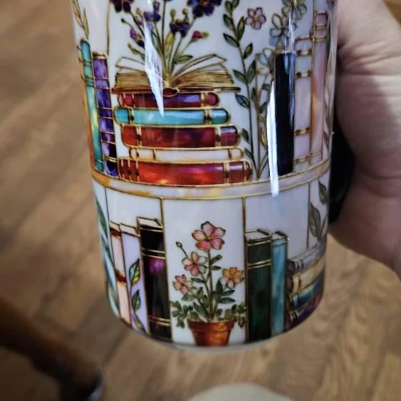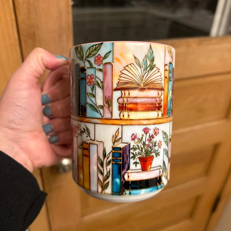 Stained-Glass Style Floral Bookshlef Mug,Book Lover Gift,Bookish Mug Clorful Resin Books Stack Coffee Cup Collection Gifts