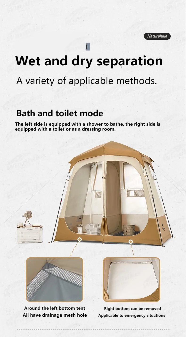 Naturehike Outdoor Automatic Shower Tent Dry Wet Separation Camping Travel Hiking Changing Shed Mobile Toilet Bathroom Portable