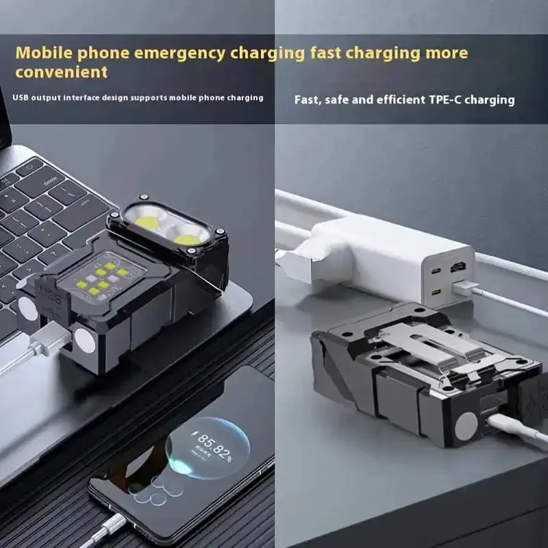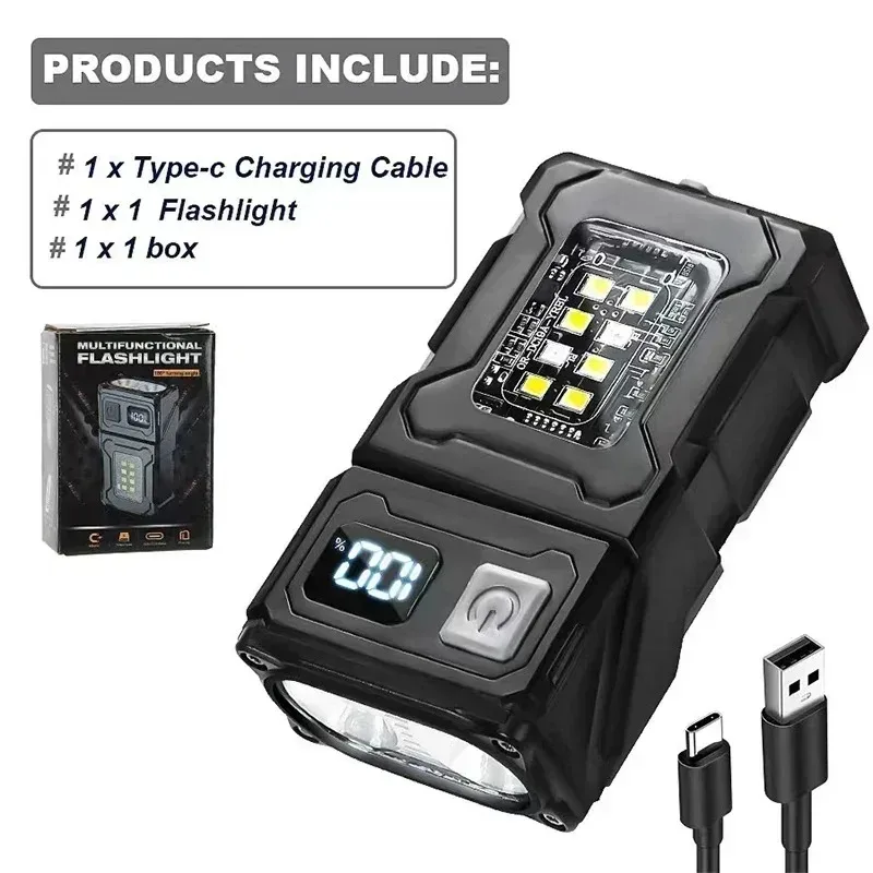 Tactical Edc Flashlight Light Portable Multifunctional Torch USB Rechargeable Outdoor Camping Emergency Light Fishing Lanter