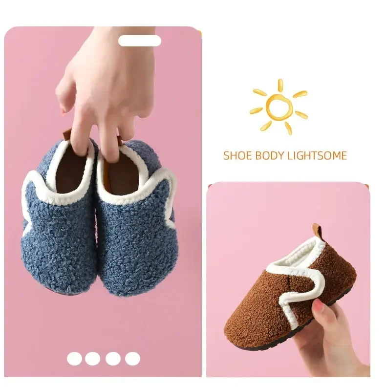 Pantuflas Child Cotton Slippers Solid Warm Kid Winter Home Shoe Boy Girl Plush Floor Shoe Indoor Soft Sole Anti-slip Cotton Shoe