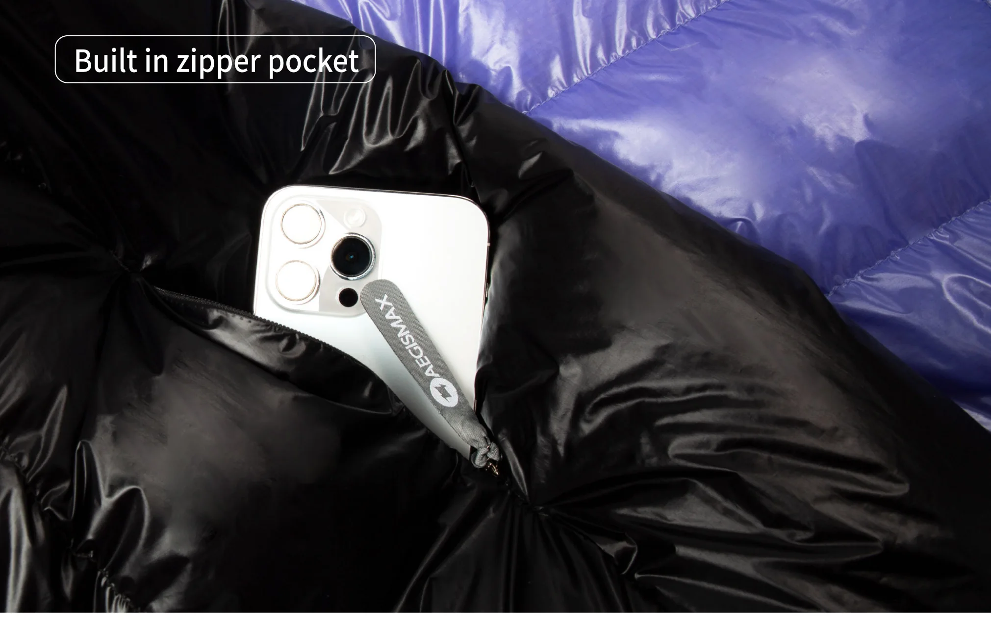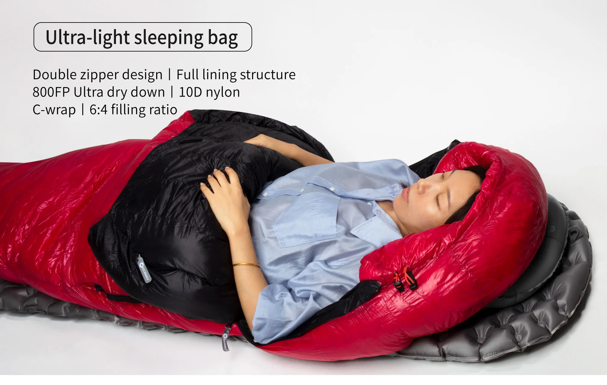 AEGISMAX-ULTRA FUTURE down sleepingbag one zipper on the left and one on the right,the inside zipper can be spliced with the same series different code, the length is160cm. the outside zipper for easy access to the sleeping bag. the length is 90cm.