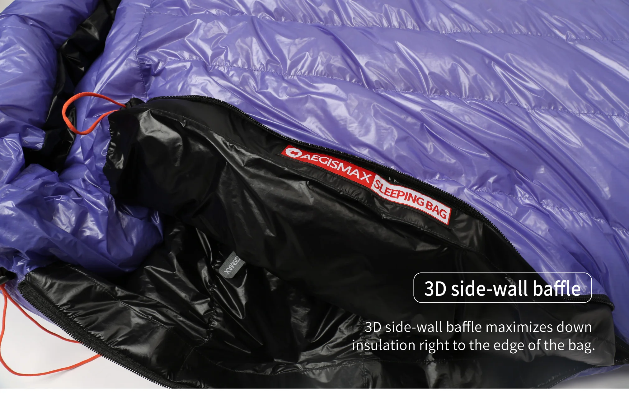 AEGISMAX-ULTRA FUTURE is a fully lining structure design, its down channel is a sectionalized design, the knee is a horizontal lane,the chest and the feet are a vertical lane, even if the body is turned during sleep, the sleeping bag is difficult to form a cold spot,so as to improve the thermal performance of the sleeping bag.
