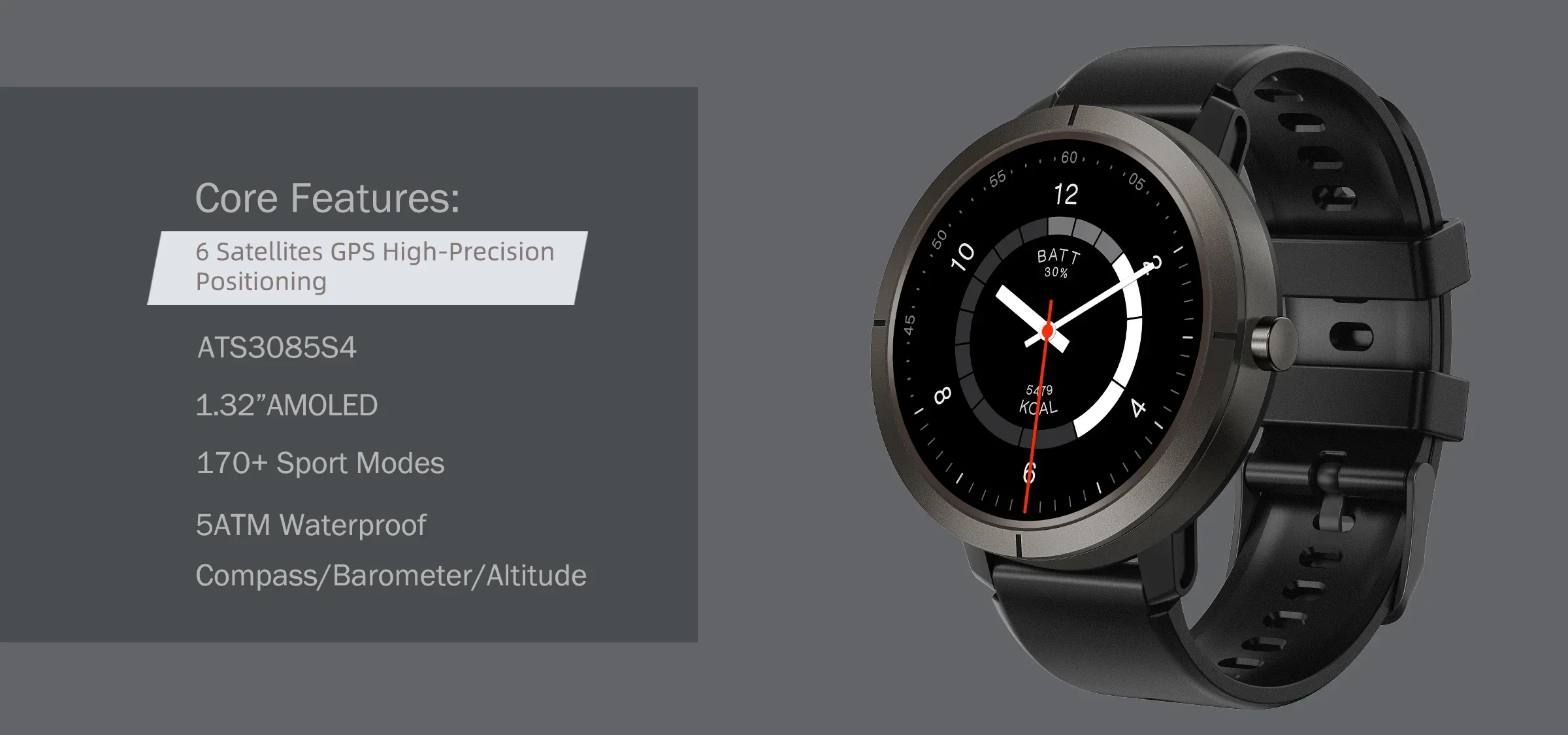 New GPS Positioning Smart Watch 1.32AMOLED 5ATM Waterproof Women Men Health Bluetooth Call 360mAh Compass 170+Sports Mode SmartWatch