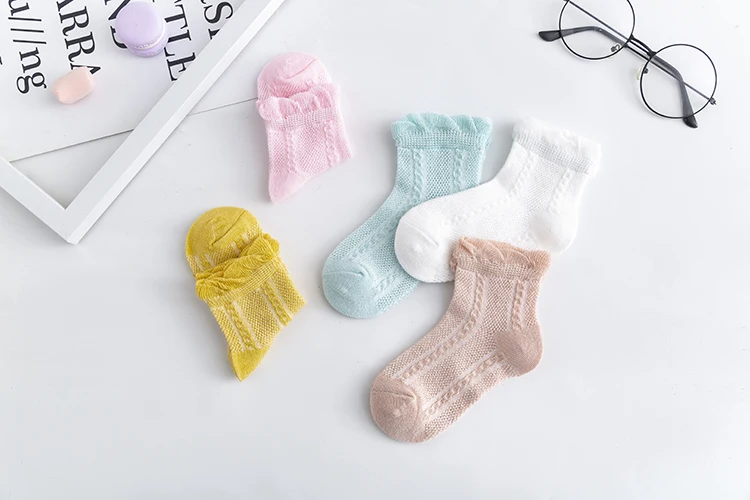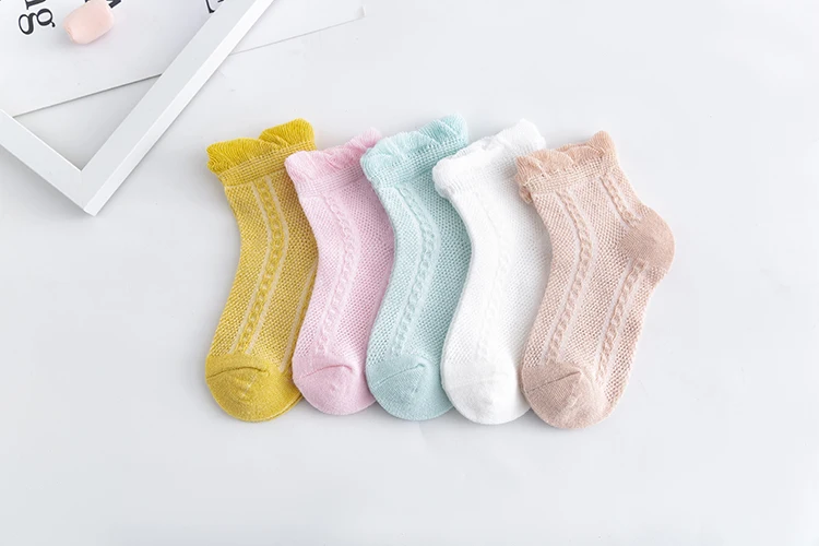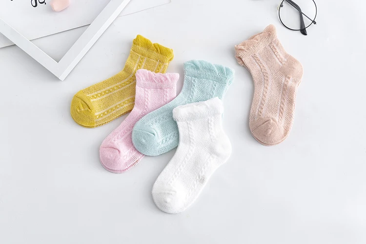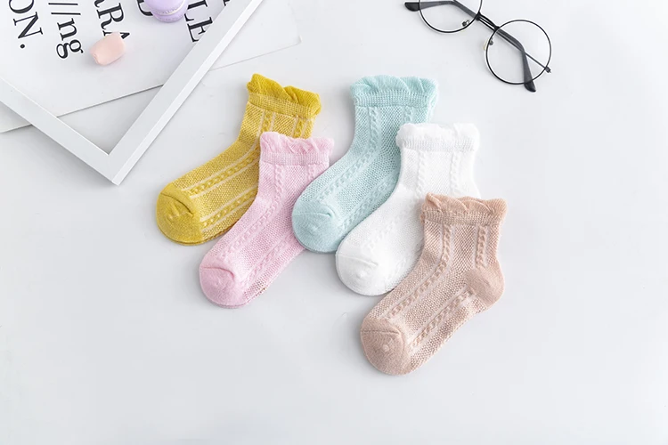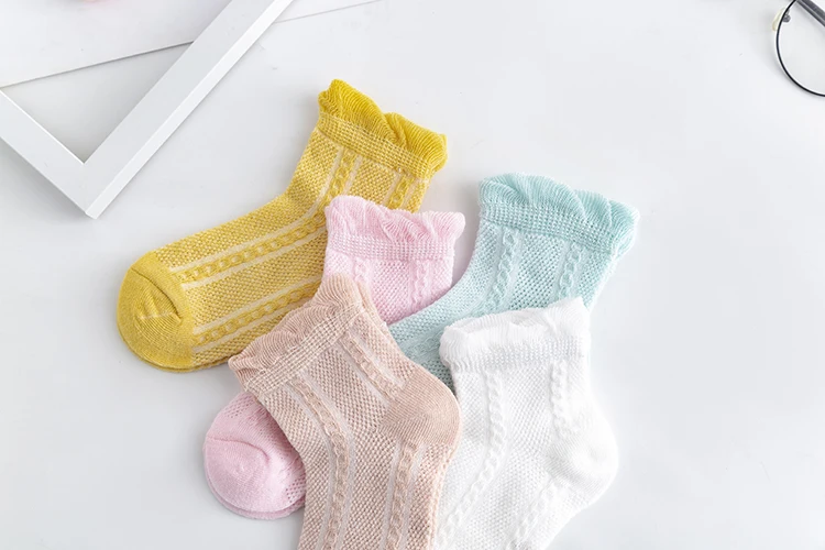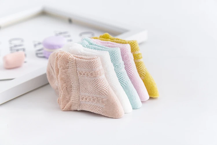 5Pairs/lot 2-9Y Baby Socks Summer Cotton Jacquard Thin Kids Socks Solid Colorful Girls Mesh Cute Newborn Boy Toddler Socks Baby