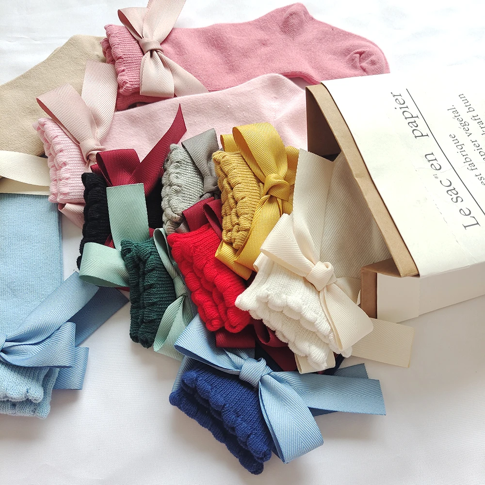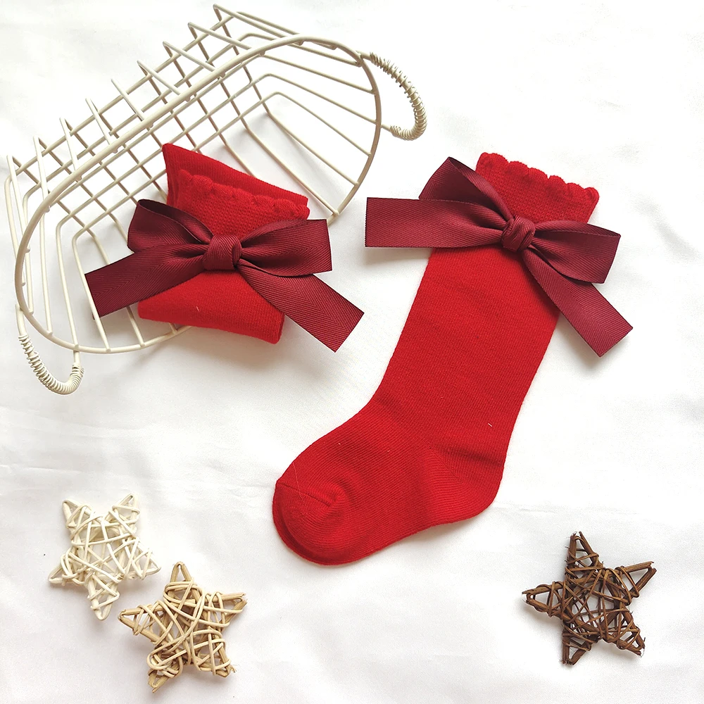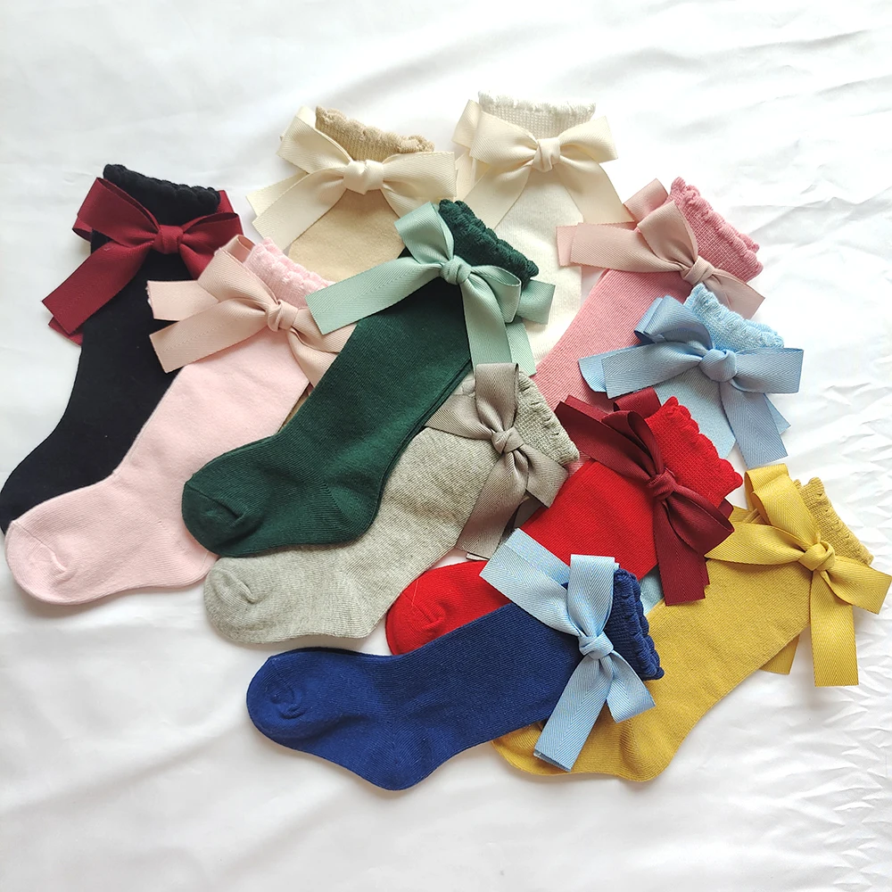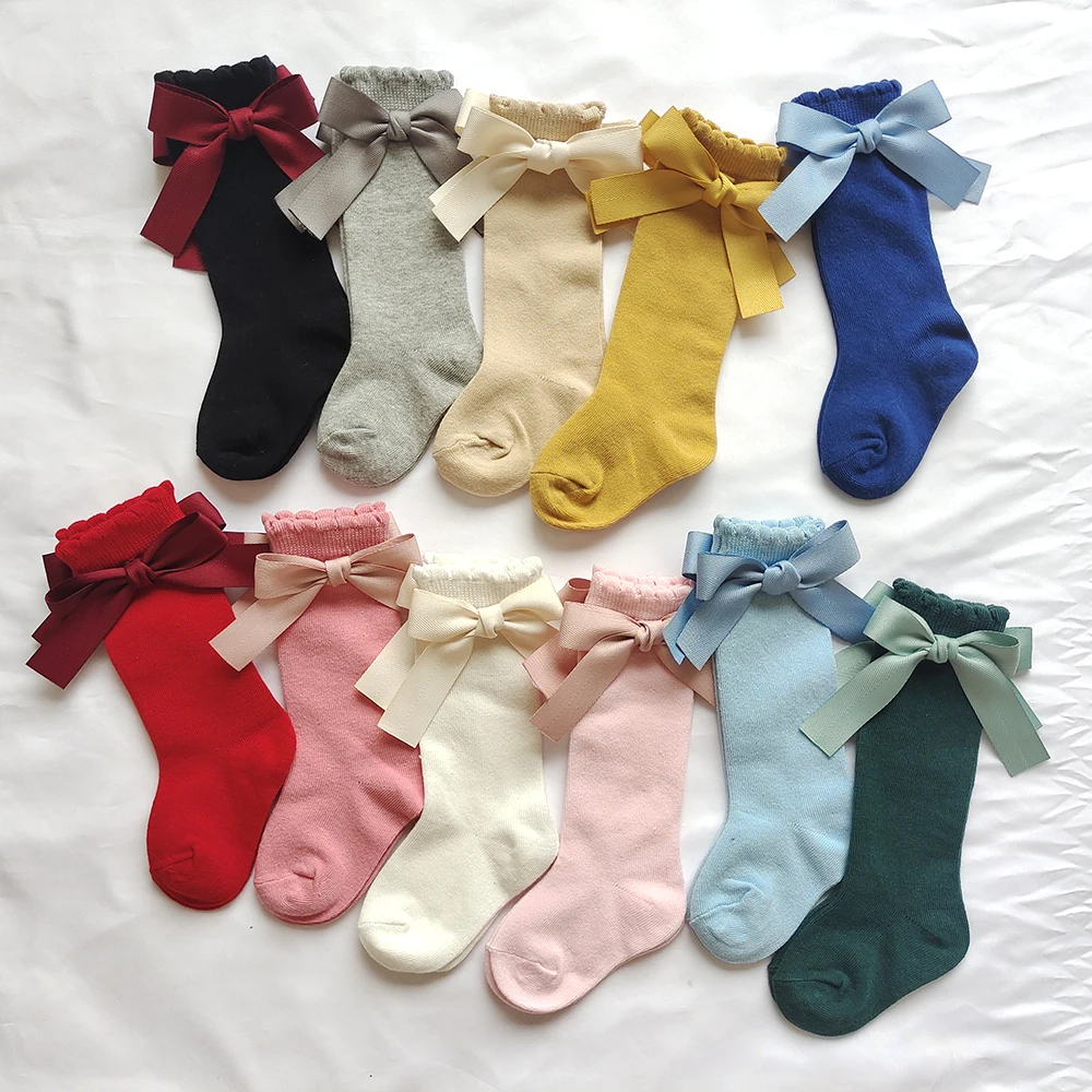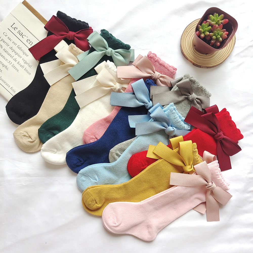 New Baby Cotton Socks Big Bow Girls Princess Socks Kids Toddlers Stockings Infant Accessories Children Long Tube Socken