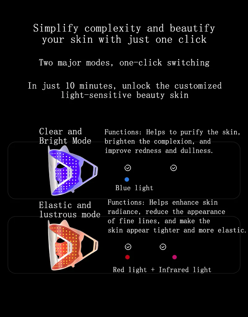 LED Beauty Mask Red Blue Light Home Skin Rejuvenation Device Brightens Skin Tone Improves dull Oily and Acne-prone Skin Care