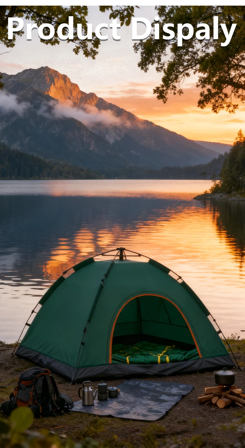 1 Green Camping Tent Outdoor Portable Foldable Overnight Fully Automatic Thickened Beach Indoor Quick-Open