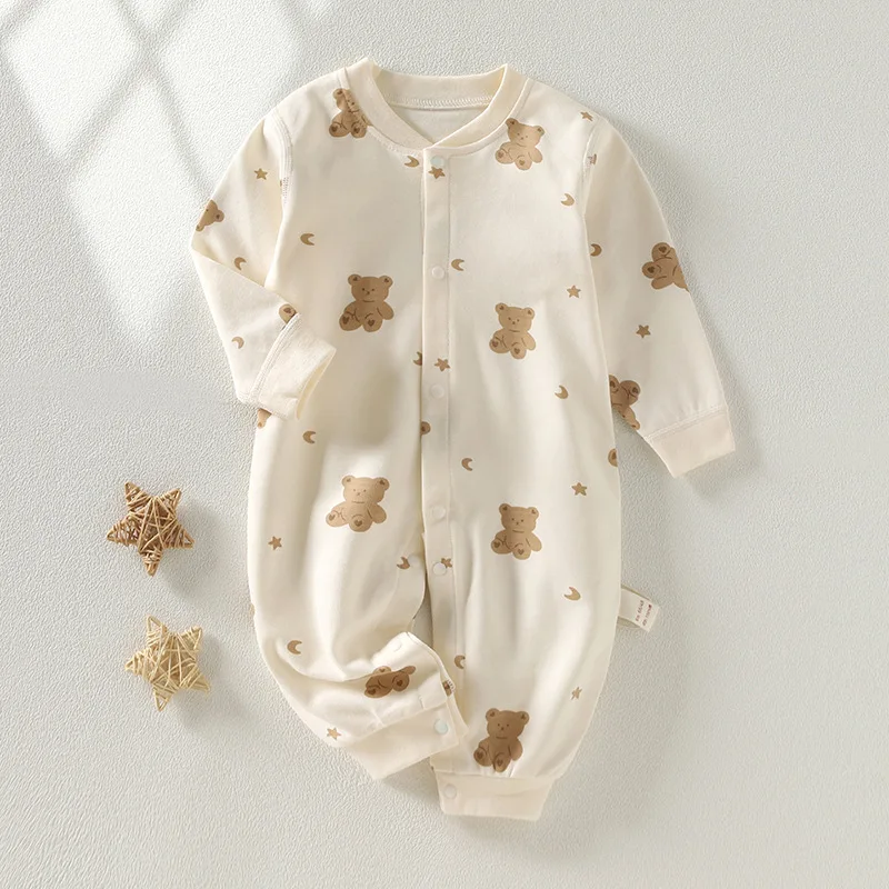 2026 Newborn Baby Romper Spring Autumn 0-24M Girl Boy Cotton Onesie Infant Cartoon Print Soft Breathable Sleepwear Kids Clothing