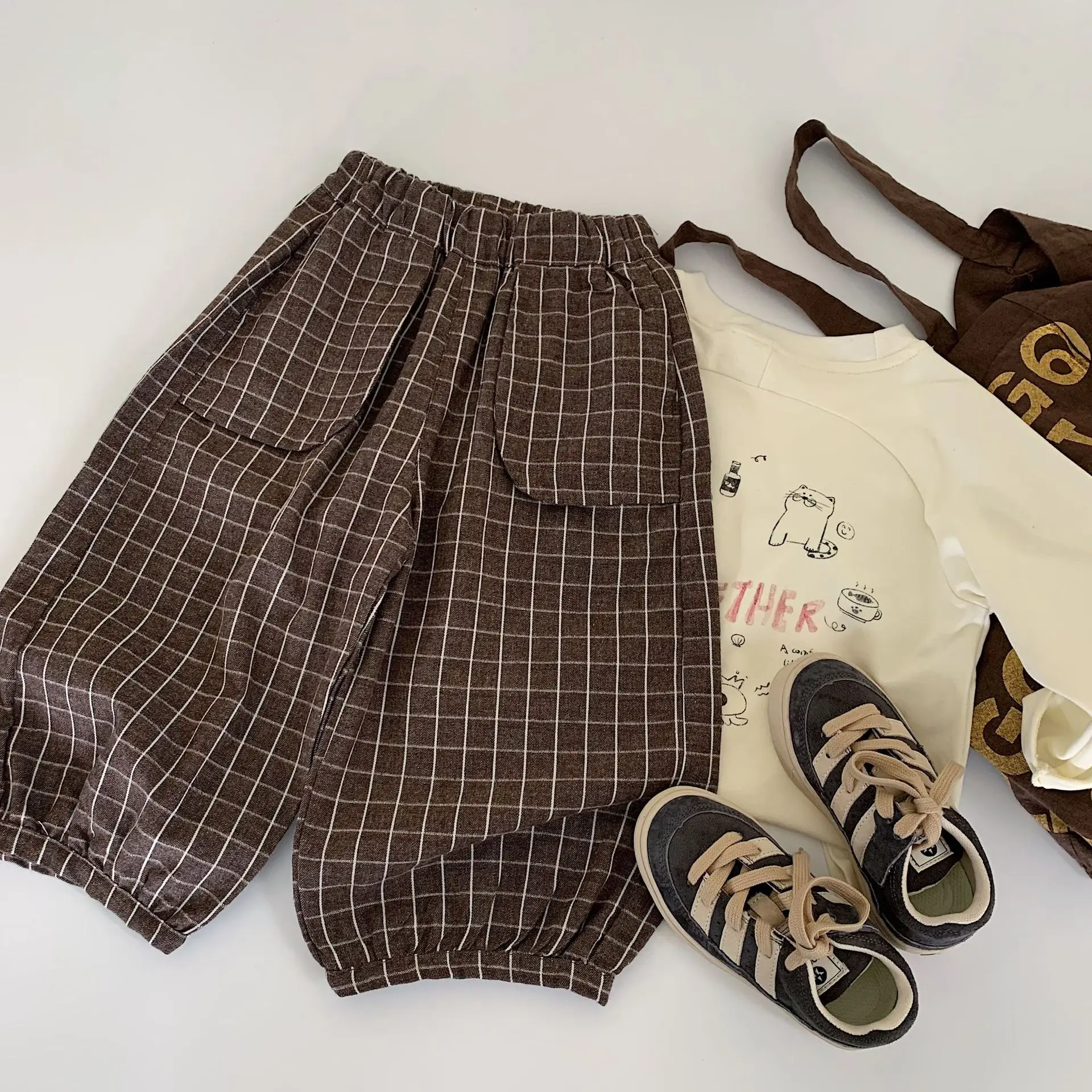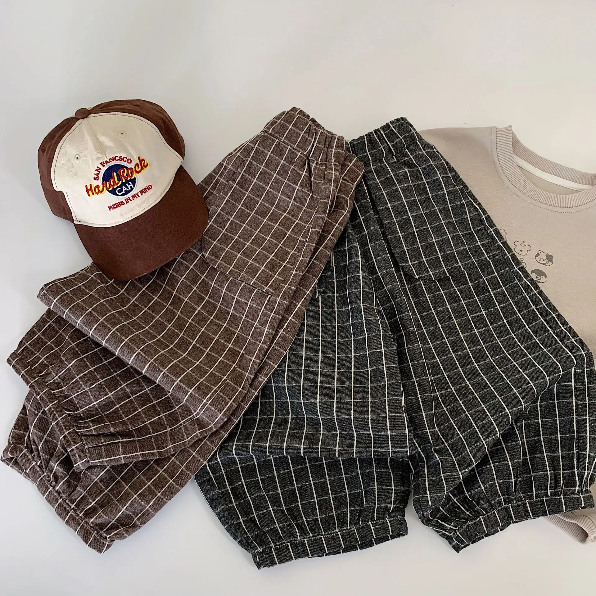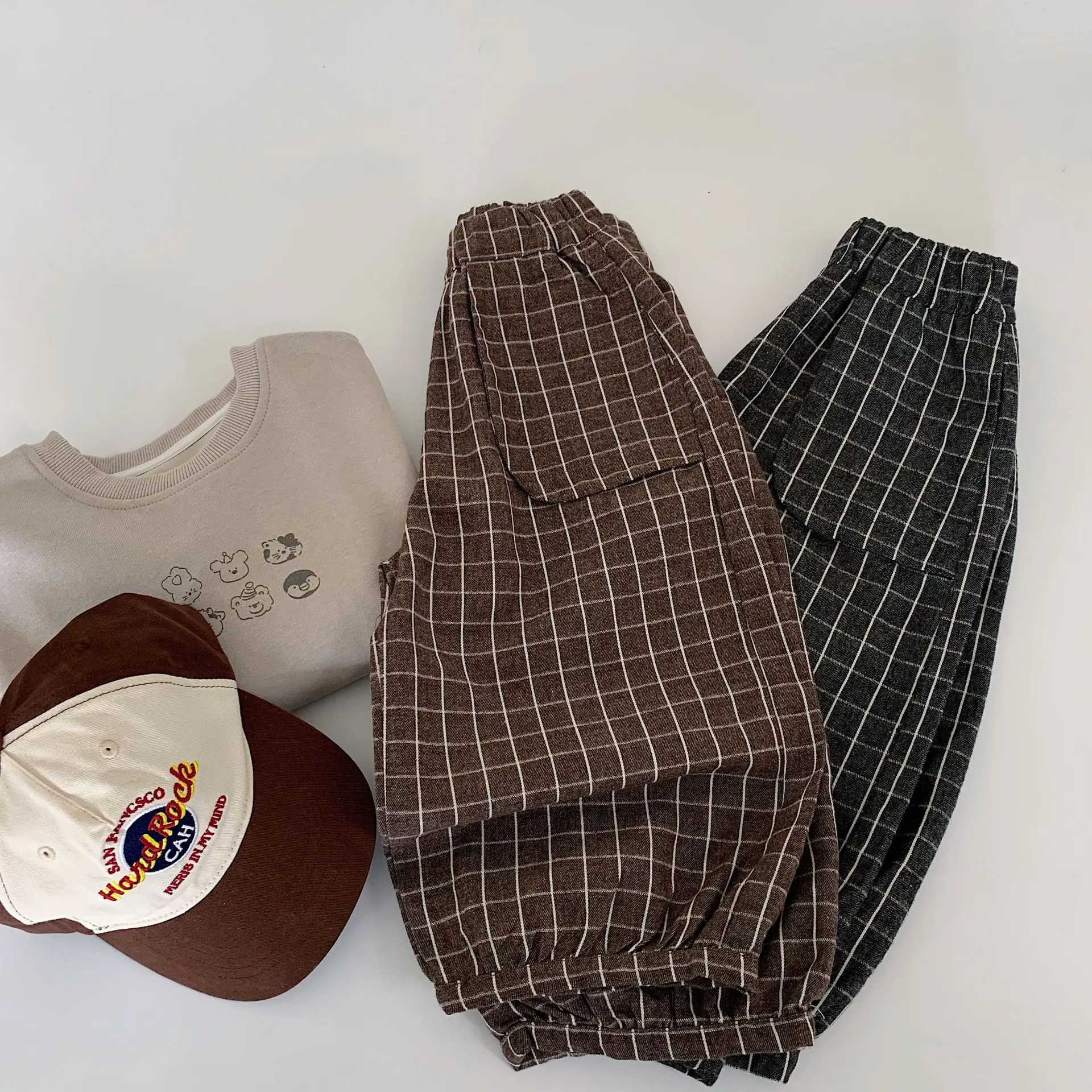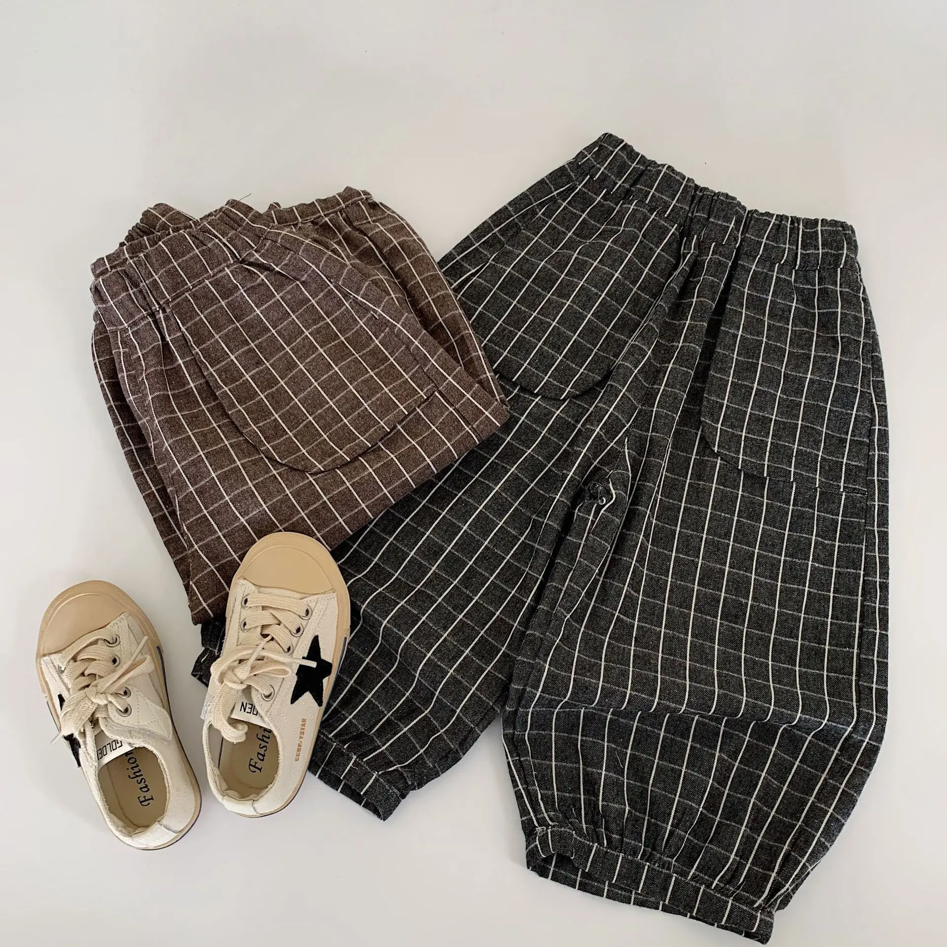 Autumn baby pants plaid vintage infant baby boys Harem pants Relaxed Elastic Waist baby boys' long pants