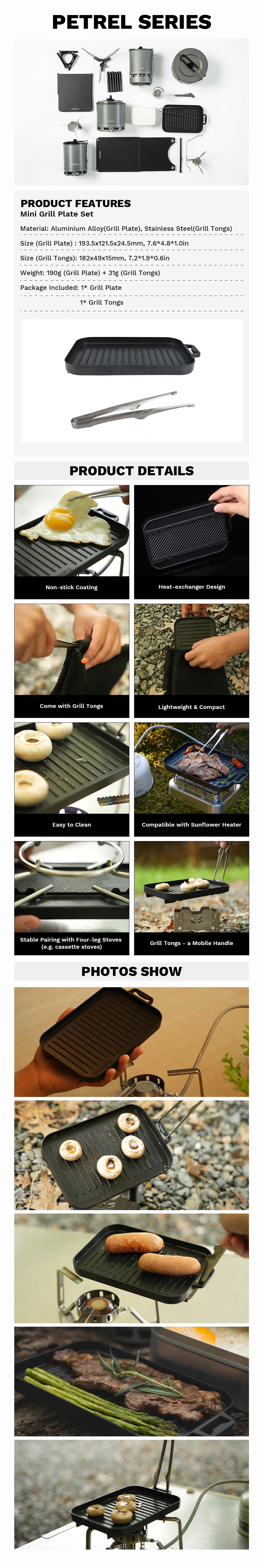 FireMaple Mini Grill Plate Set Thickened Heat-resistant Non Stick Rectangle Barbecue Versatile Outdoor Camping Grilling Pan