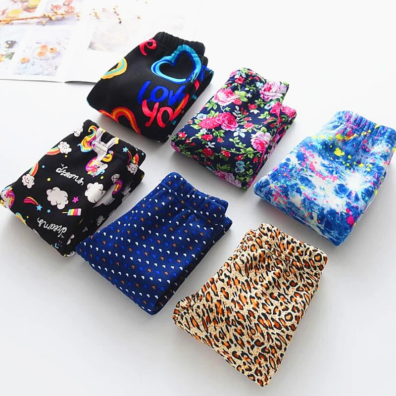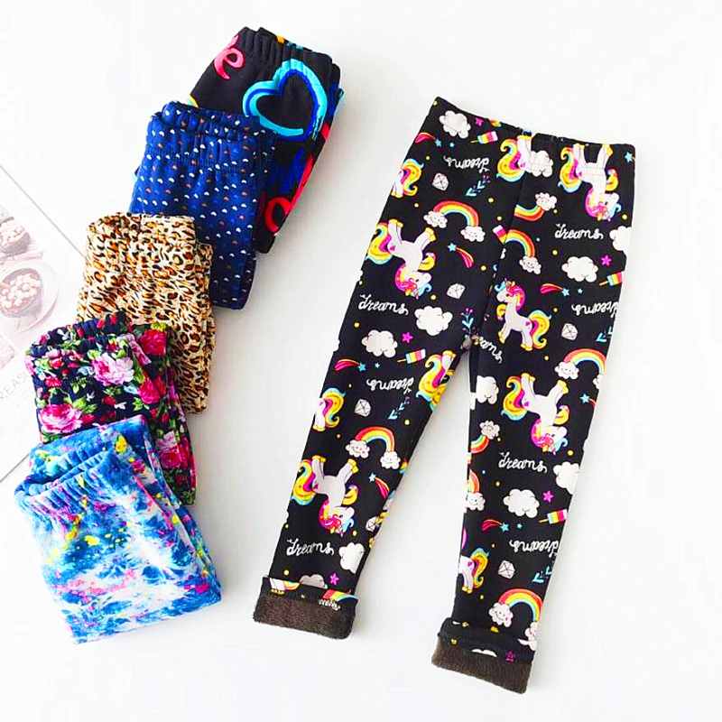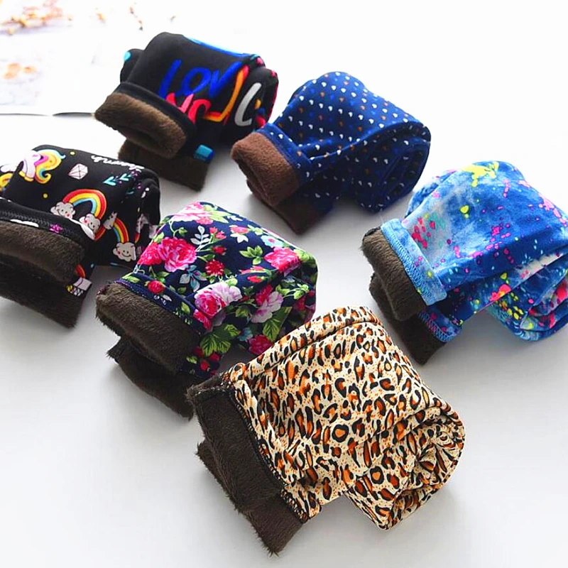 Kids Pants Autumn Winter Girls Plus Velvet Warm Trousers Baby Girl Vintage Floral Thick Slim Leggings Children Clothing